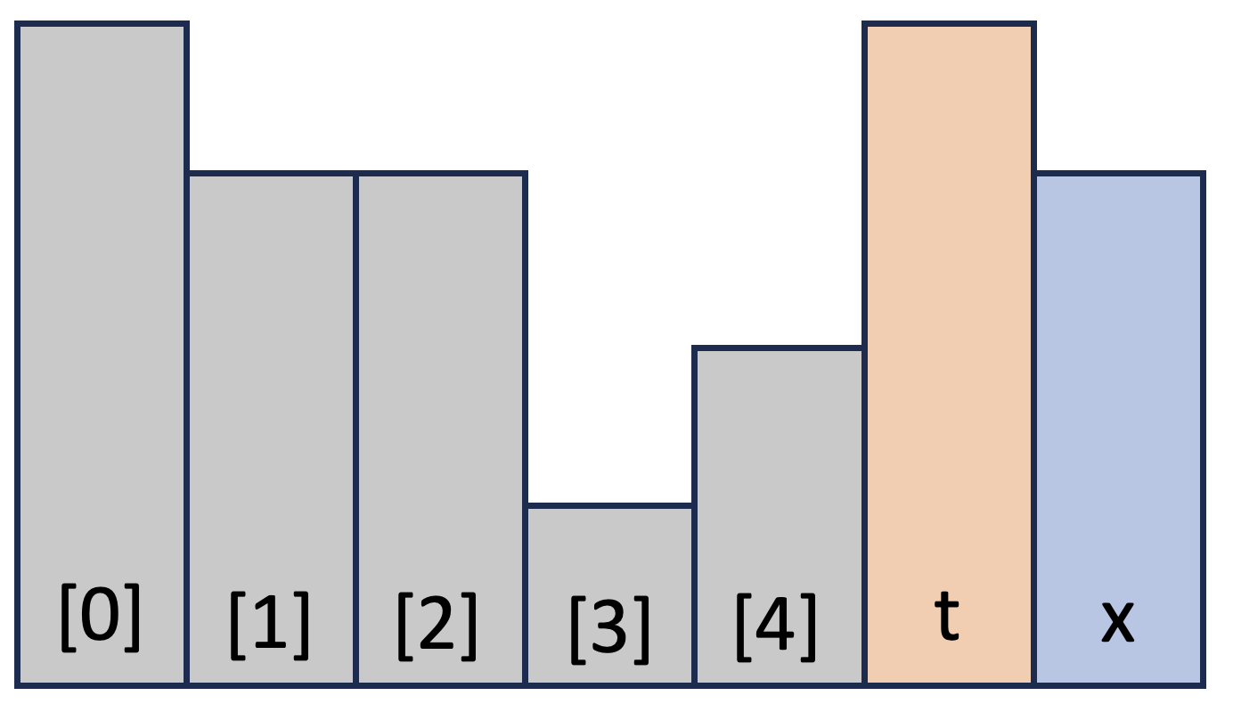 위 그림에서 `x앞에 x보다 큰 사람`은 [0]고 `t보다 작은 사람`은 [3]뿐이므로 `x`는 [0], [1], [2], [3], `t`를 볼 수 있다.