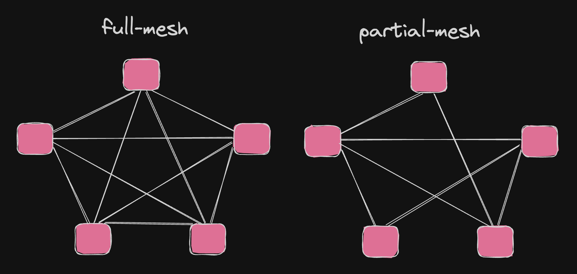 모든 노드가 연결되어있지 않고 full-mesh에서 몇 개의 링크가 없지만 `connected graph`를 이루는 네트워크 형상을 `partial-mesh`라고 한다.