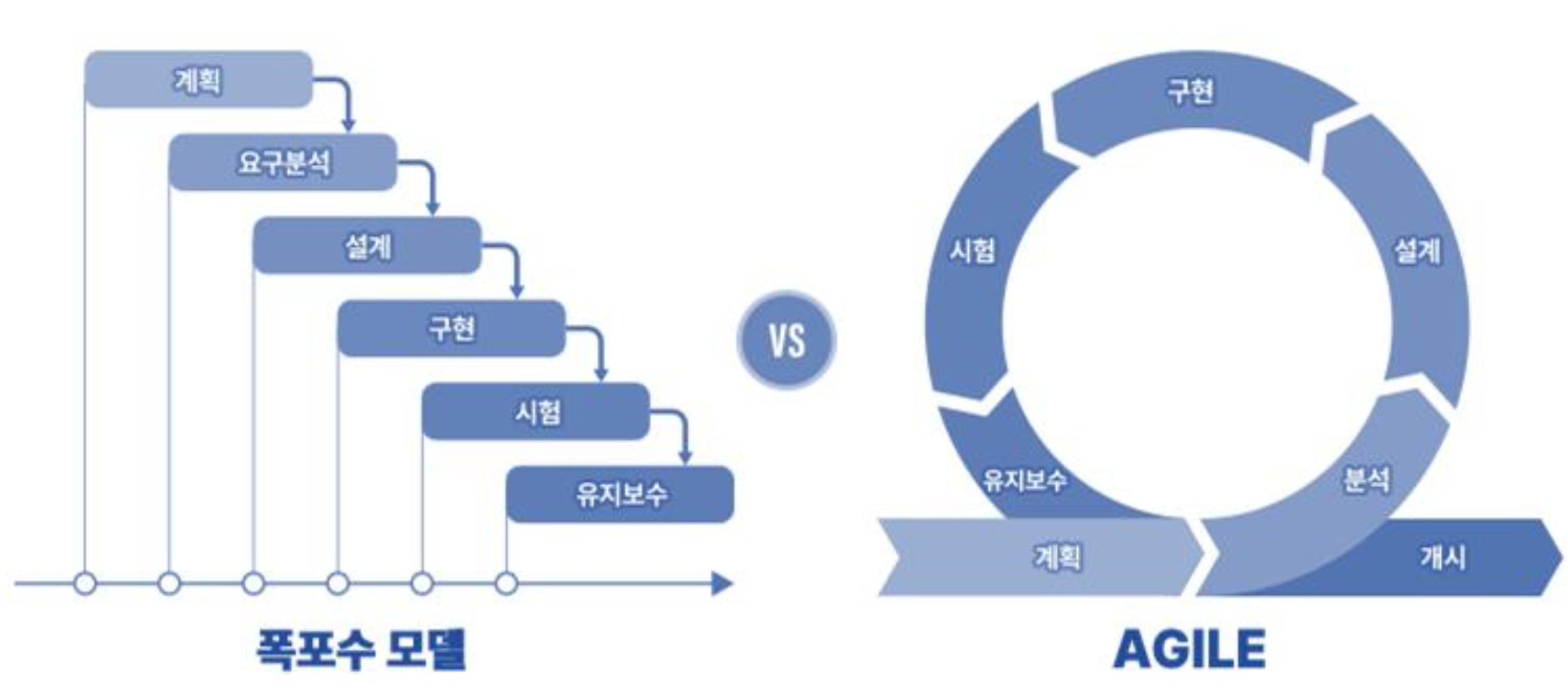 - 프로젝트 방식: 폭포수 모델과 애자일