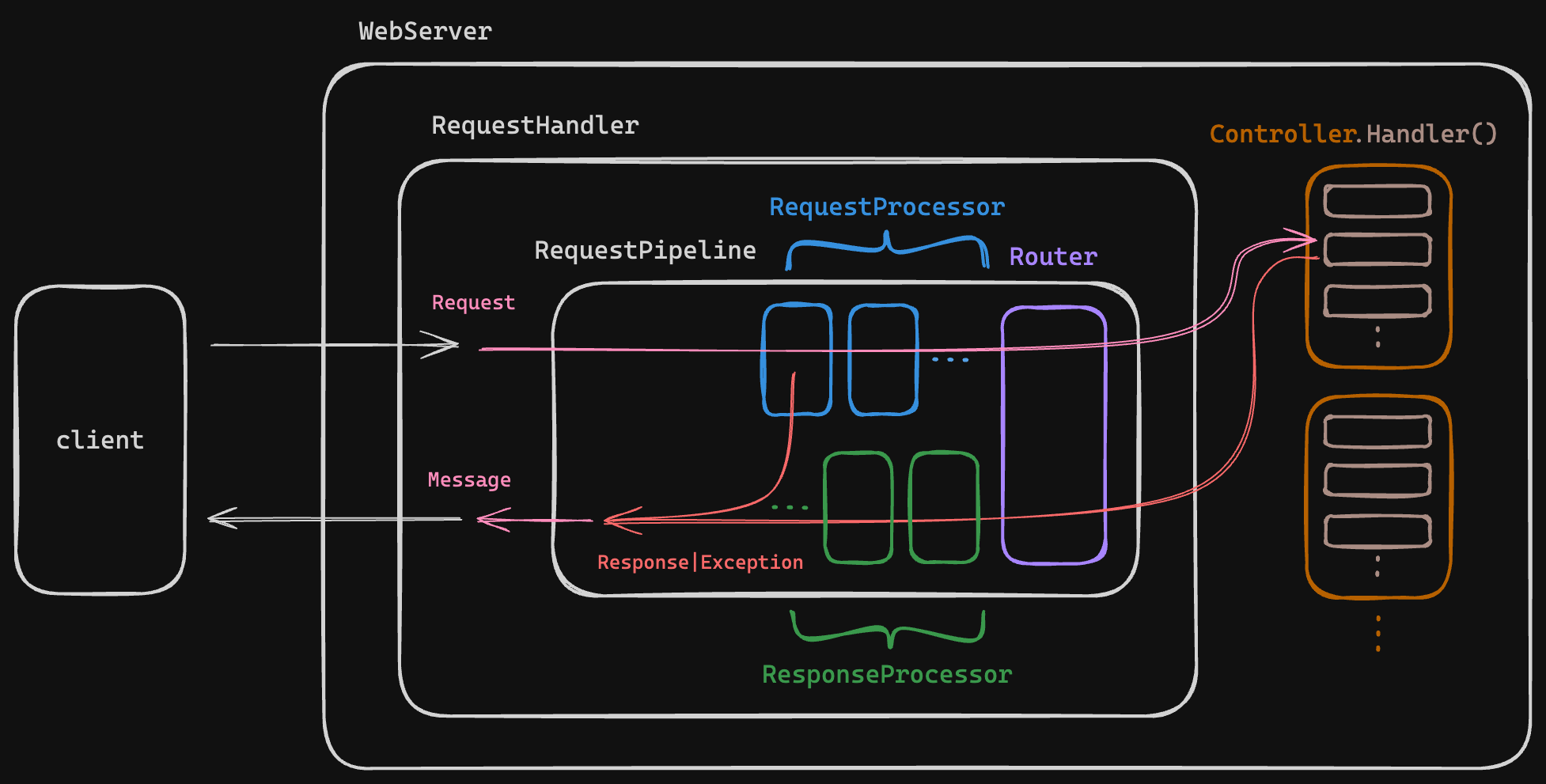 BE WAS 프로젝트는 plain Java로 WAS를 구현하는 프로젝트입니다. 워밍업 프로젝트 회고에서 말씀 드렸듯 저는 Java로 알고리즘 문제만 풀어봤지 Spring 프레임워크를 사용해 본적도, 어떤 프로그램을 제작해 본 경험도 없습니다. 따라서 BE WAS를 진행하며 Spring 프레임워크의 구조와 under the hood 동작 방식을 공부하고 프로젝트에 적용해 단순히 기능을 충족하는 WAS가 아닌 추상화를 통해 확장성있고 유연한 프레임워크 제작하는 것을 목표로 삼았습니다.