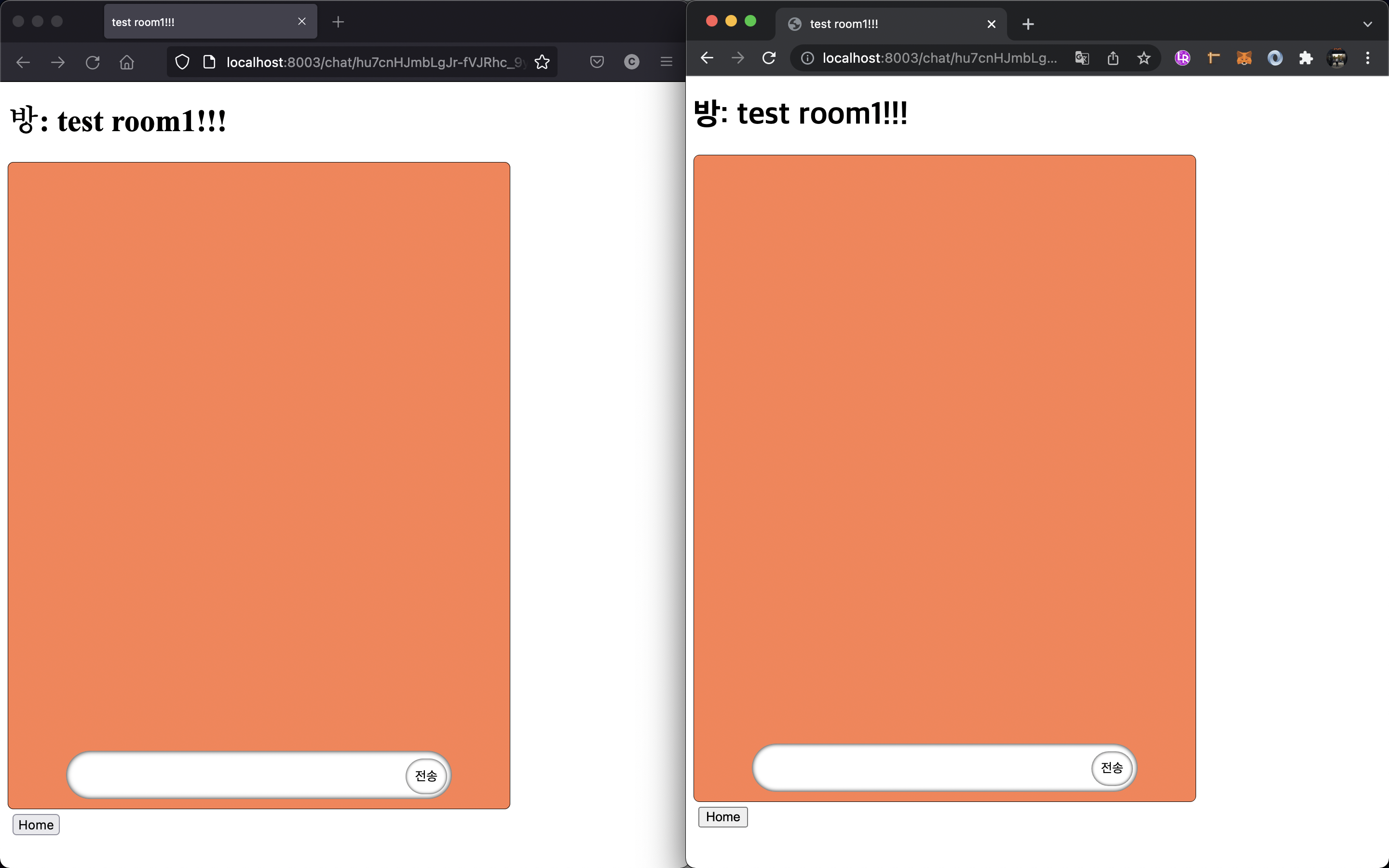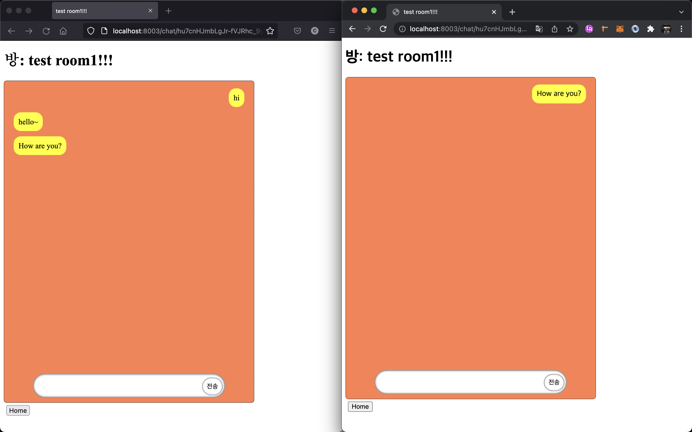 다른 채팅방을 생성해 메시지를 보내보면 같은 채팅방에 있는 사람끼리만 소통할 수 있는 것을 확인할 수 있습니다.