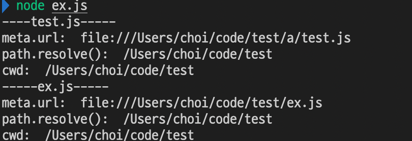 path.resolve()와 process.cwd()는 ex.js의 경로를 나타내고 있다. 즉 entry point 파일의 directory 경로다.