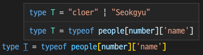 type T = typeof people[number] // { name:'cloer', ... } | { name:'Seokgyu', ... }
