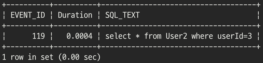 FROM performance_schema.events_statements_history_long WHERE SQL_TEXT like '%userId=%';`
