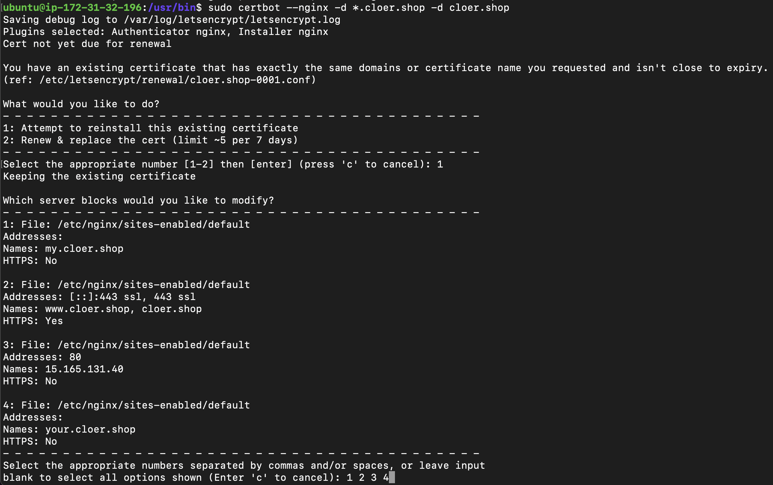 sudo certbot --nginx -d cloer.shop -d www.cloer.shop