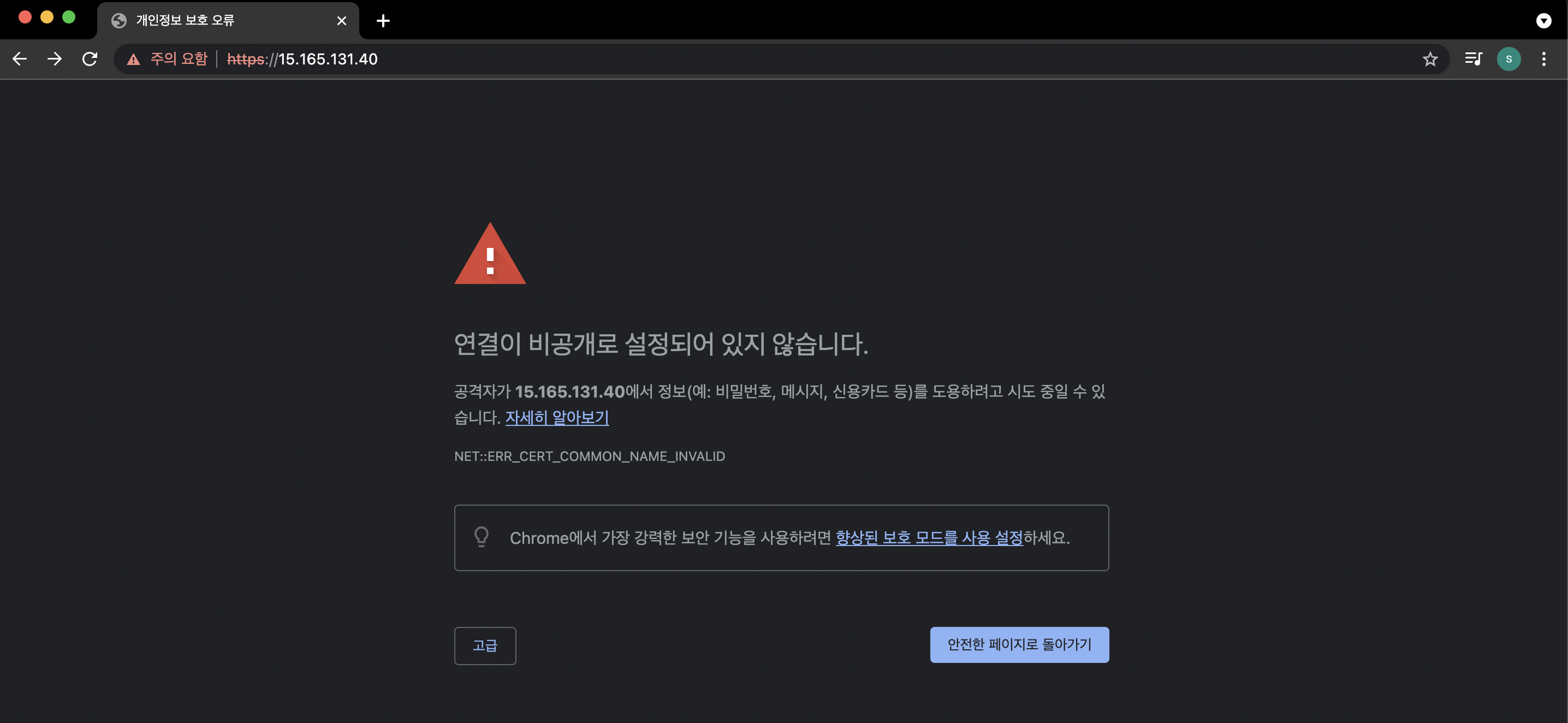 글을 쓰다보니 https://{ip주소}로 접근할때를 설정 안해줘서 확인 해봤는데 역시 오류가 났다.