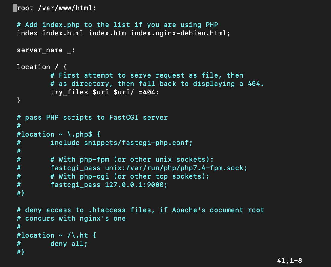 sudo vim /etc/nginx/sites-avilable/default //파일 수정